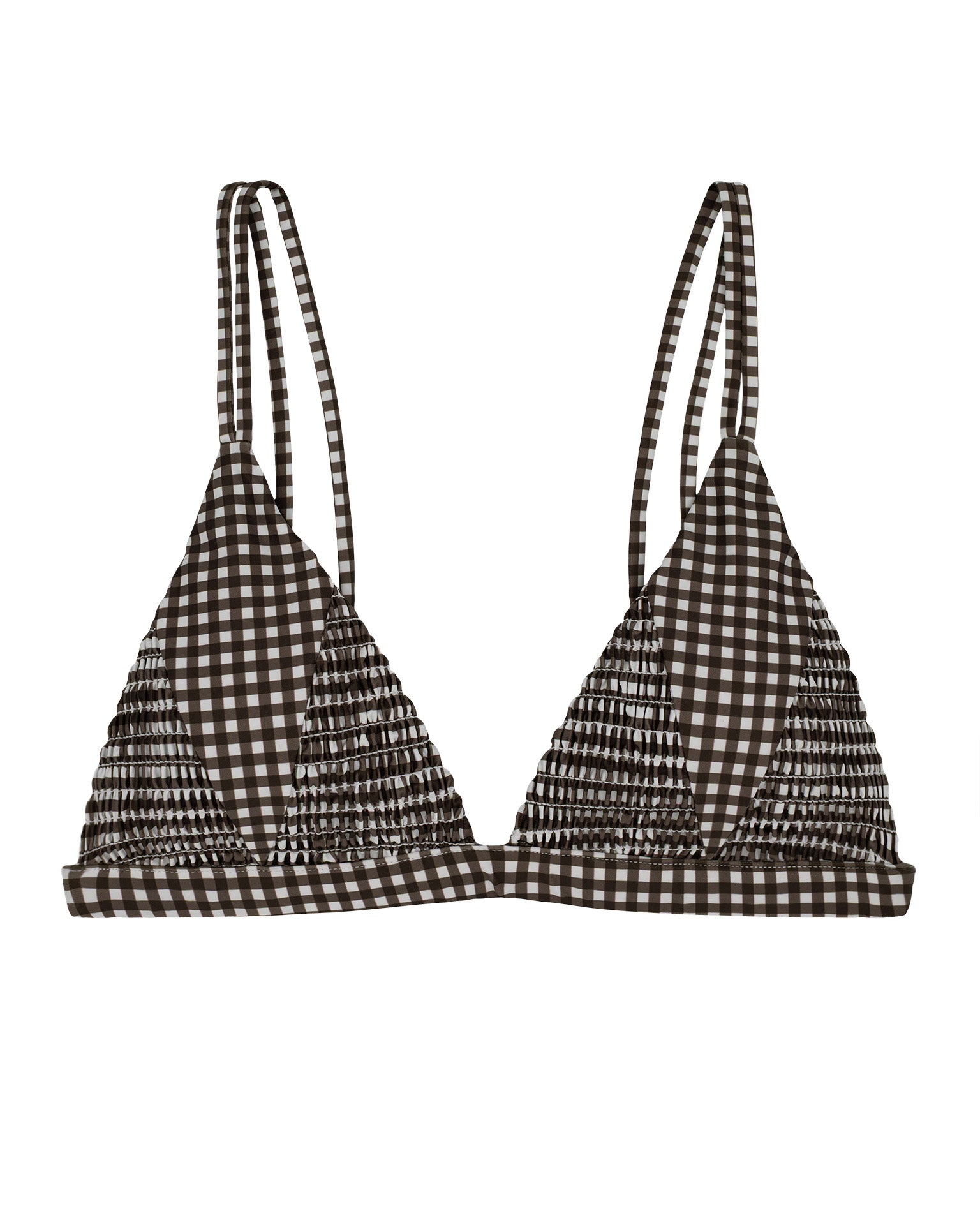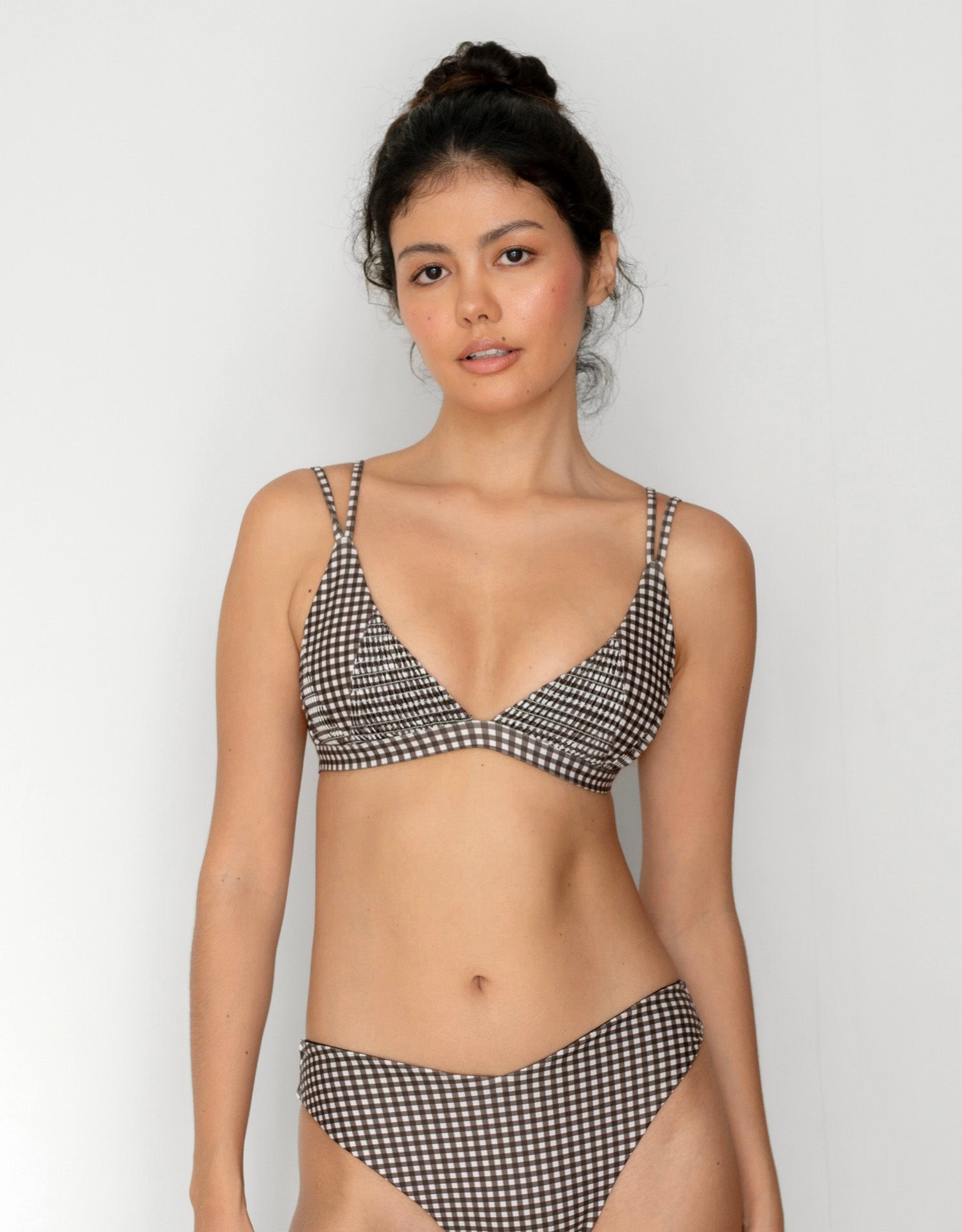 シャーリングの切り返しデザインがポイントのトライアングルビキニ。