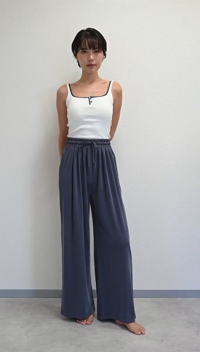 モダール ワイドレッグ とろみパンツ -navy-