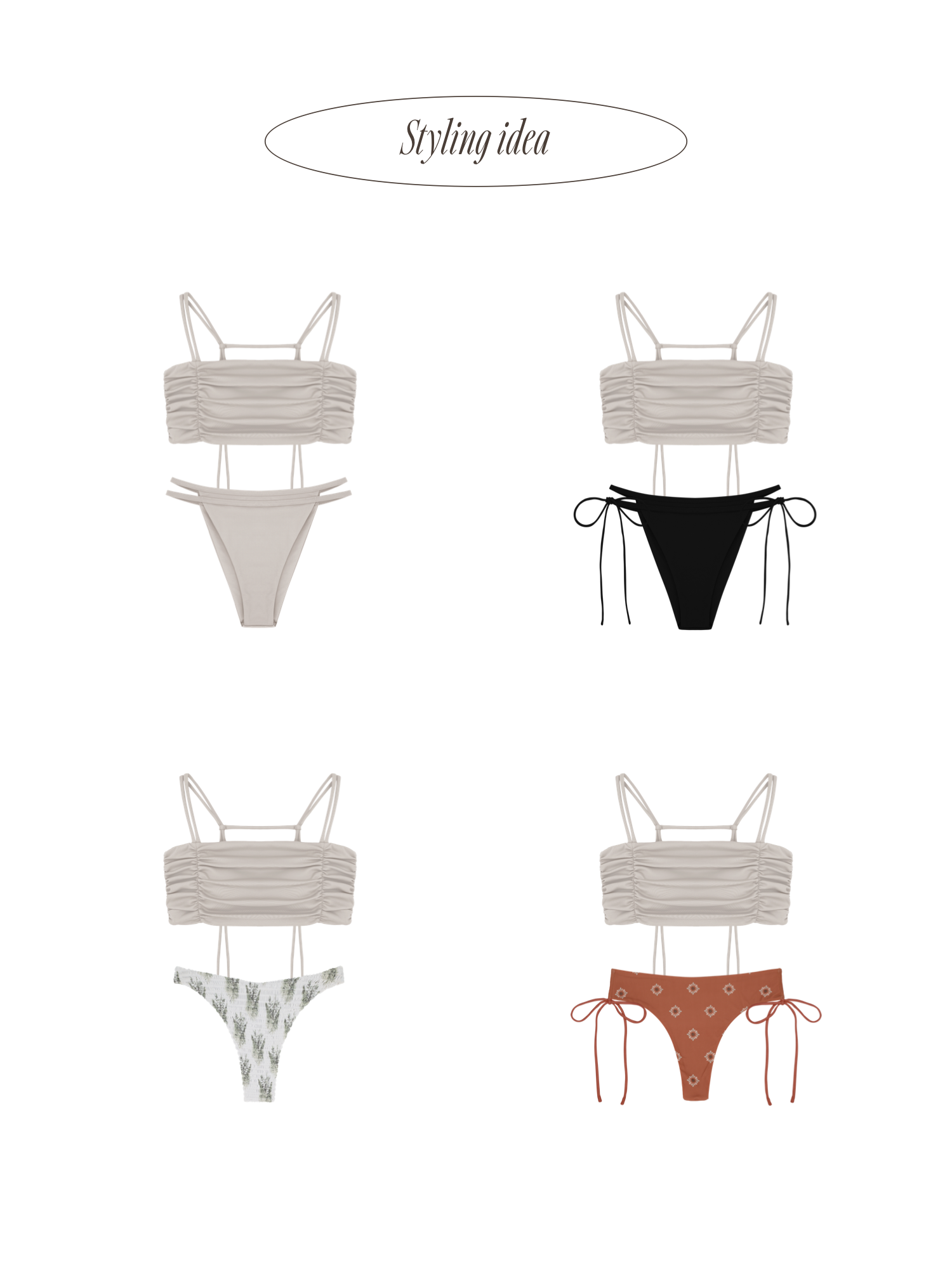 たっぷりギャザーでバストにボリュームを出してくれるバンドゥビキニトップ。