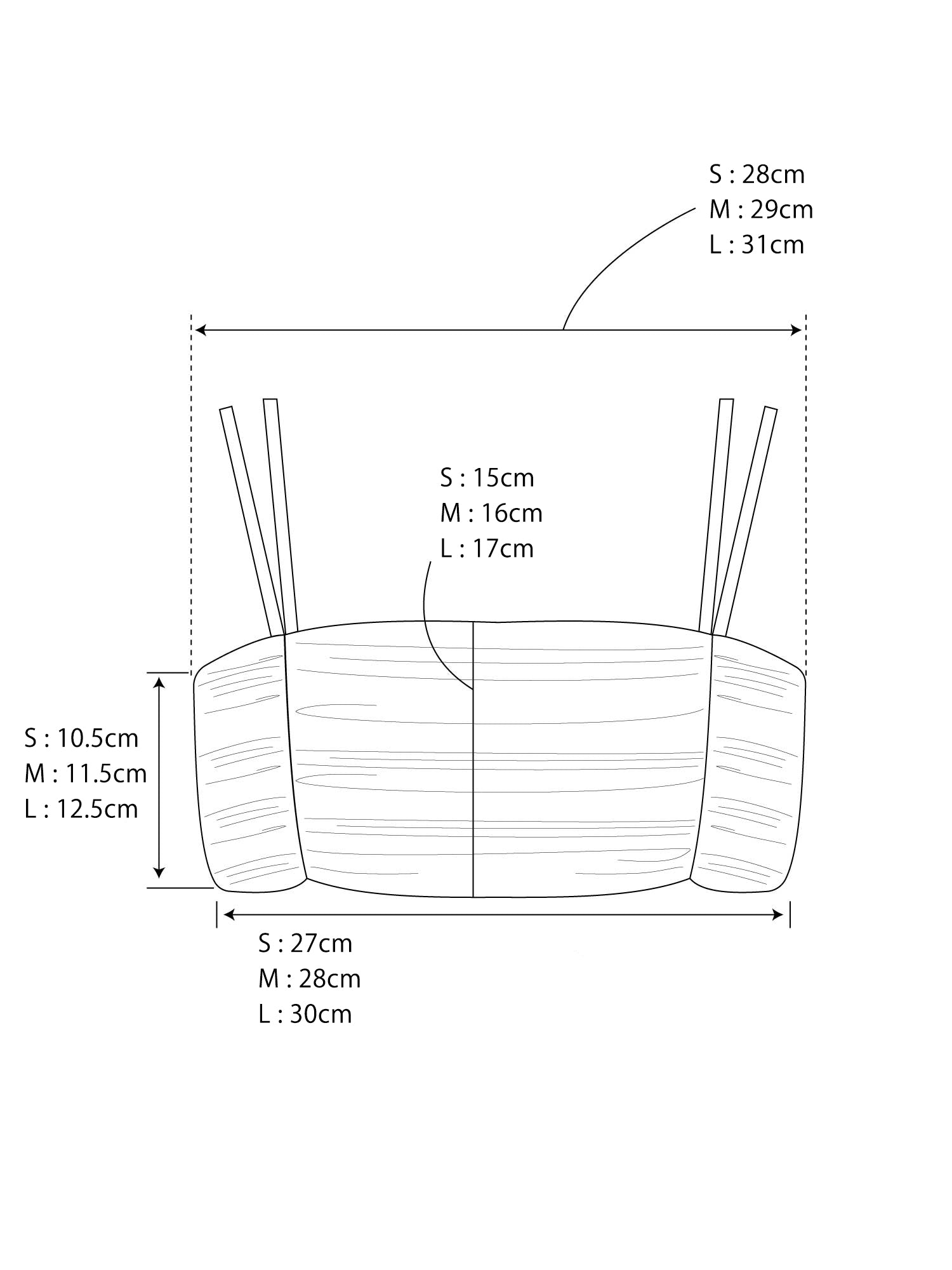 ※平置きサイズ画像の記載サイズは手作業で測っているため、お届けする商品の寸法と差異が生じる場合があります。また全て手作業でお作りしているため、同じ商品でも各箇所で約1cmほどの差異が生じてしまいます。予めご了承ください。