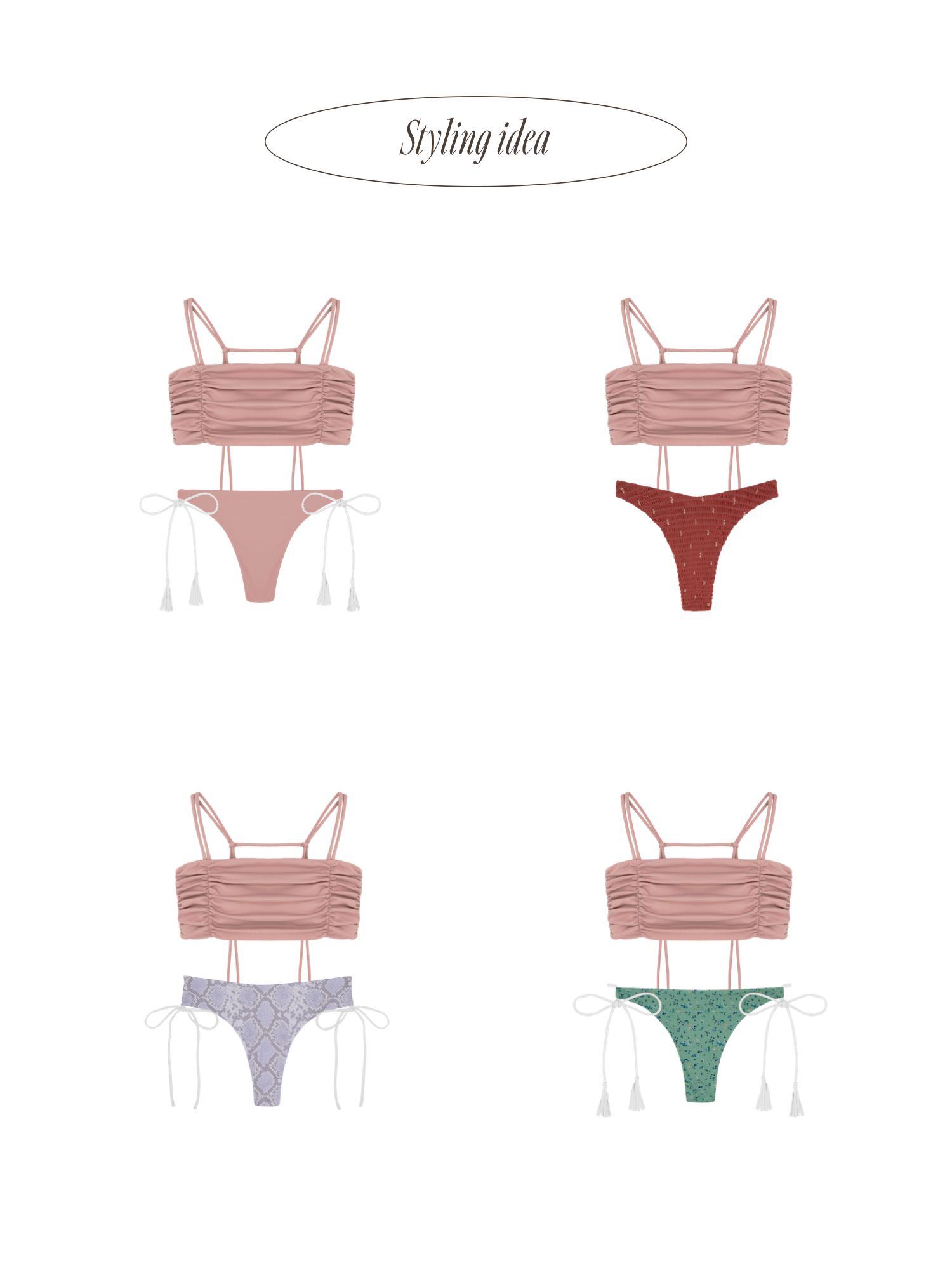 たっぷりギャザーでバストにボリュームを出してくれるバンドゥビキニトップ。