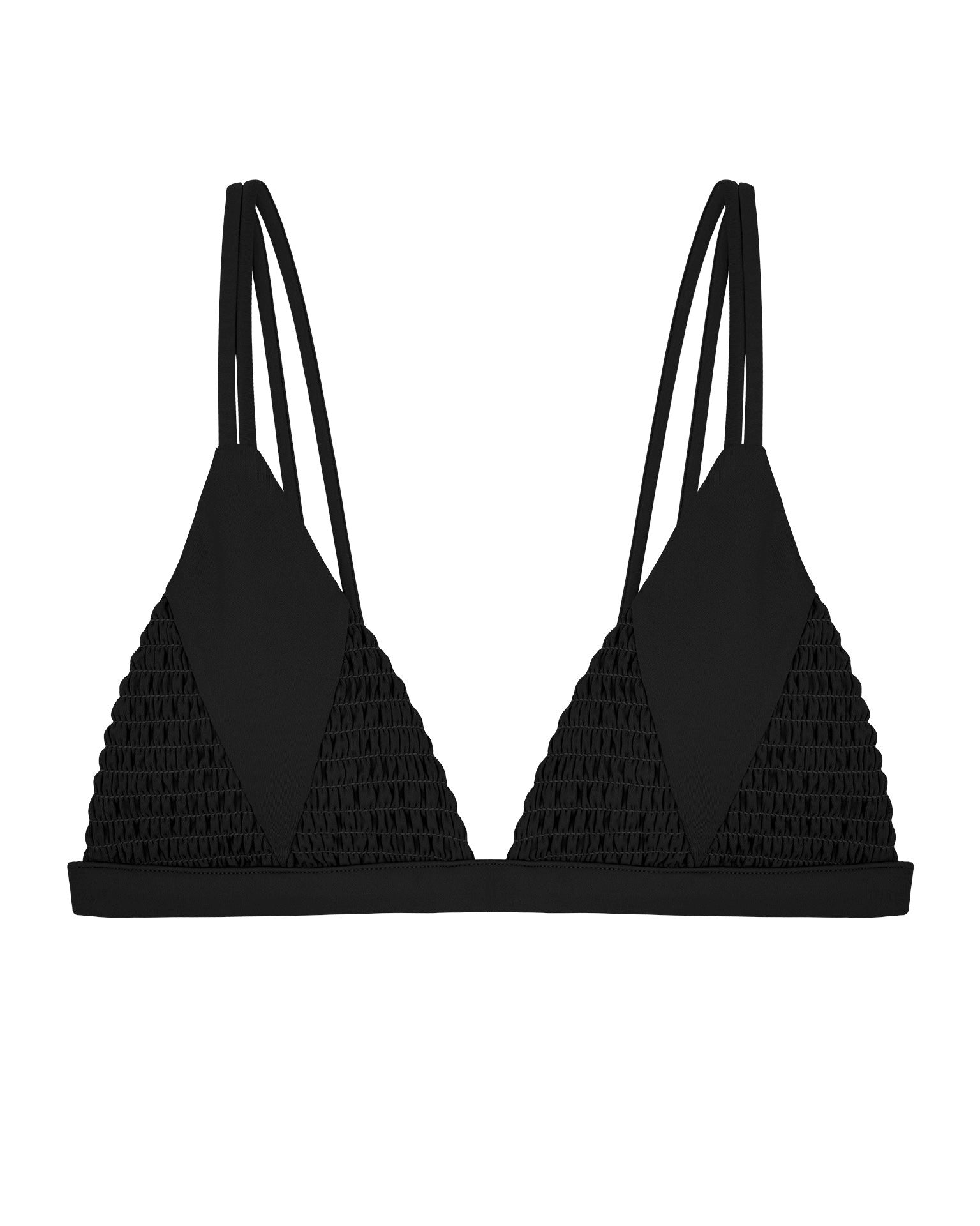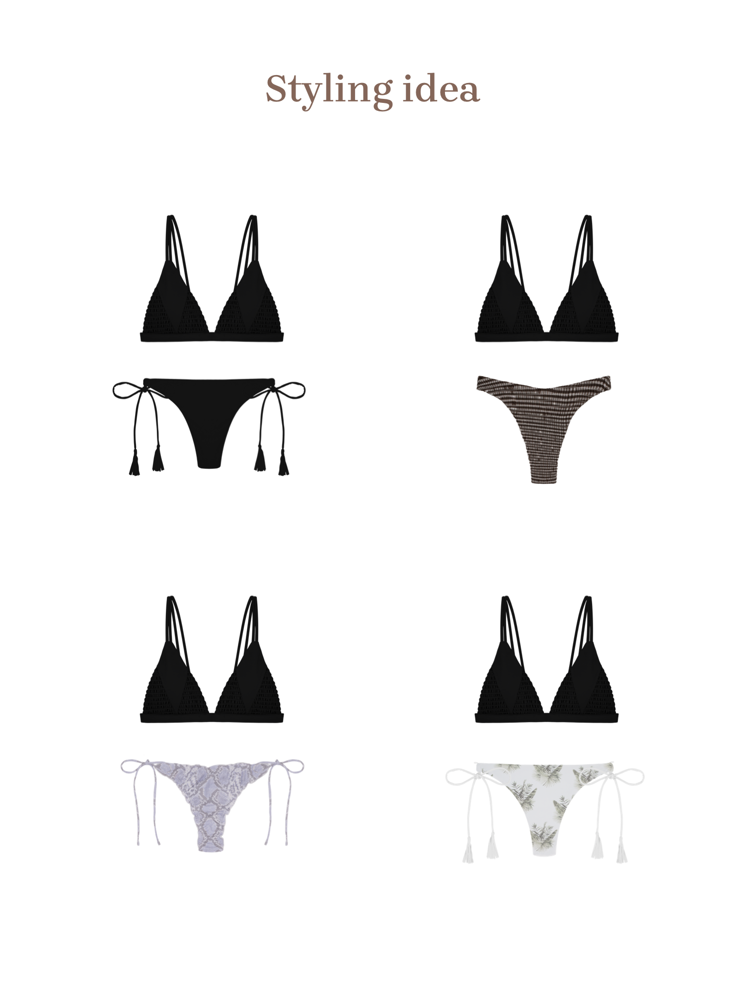 シャーリングの切り返しデザインがポイントのトライアングルビキニ。