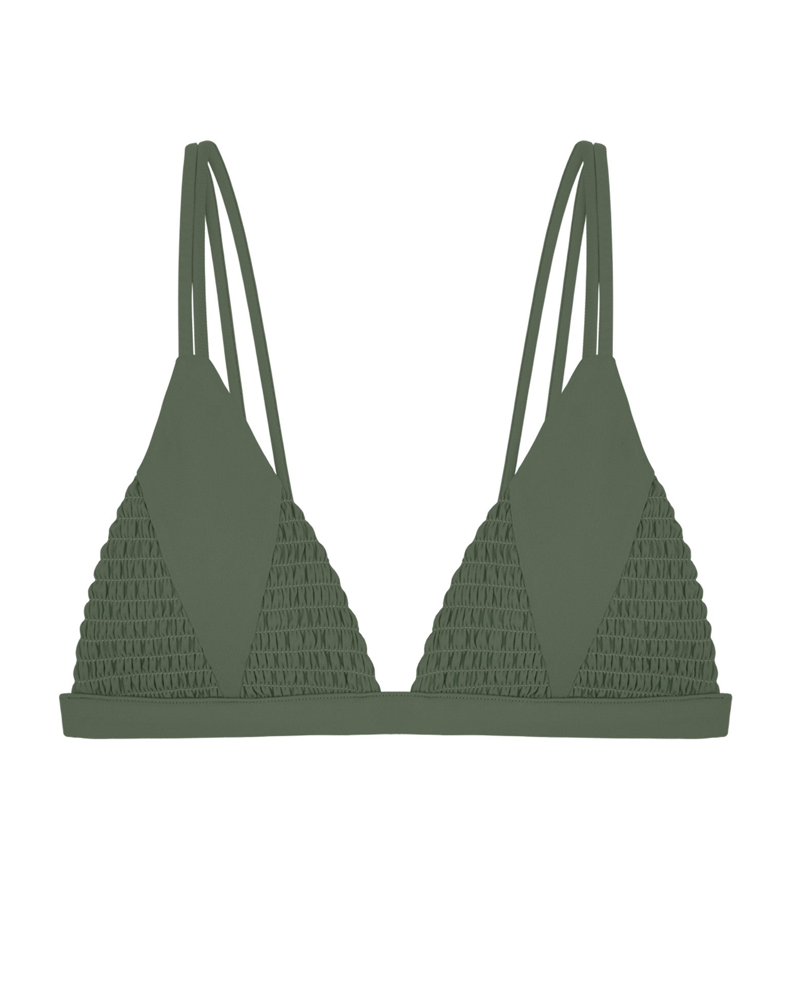 シャーリングの切り返しデザインがポイントのトライアングルビキニ。