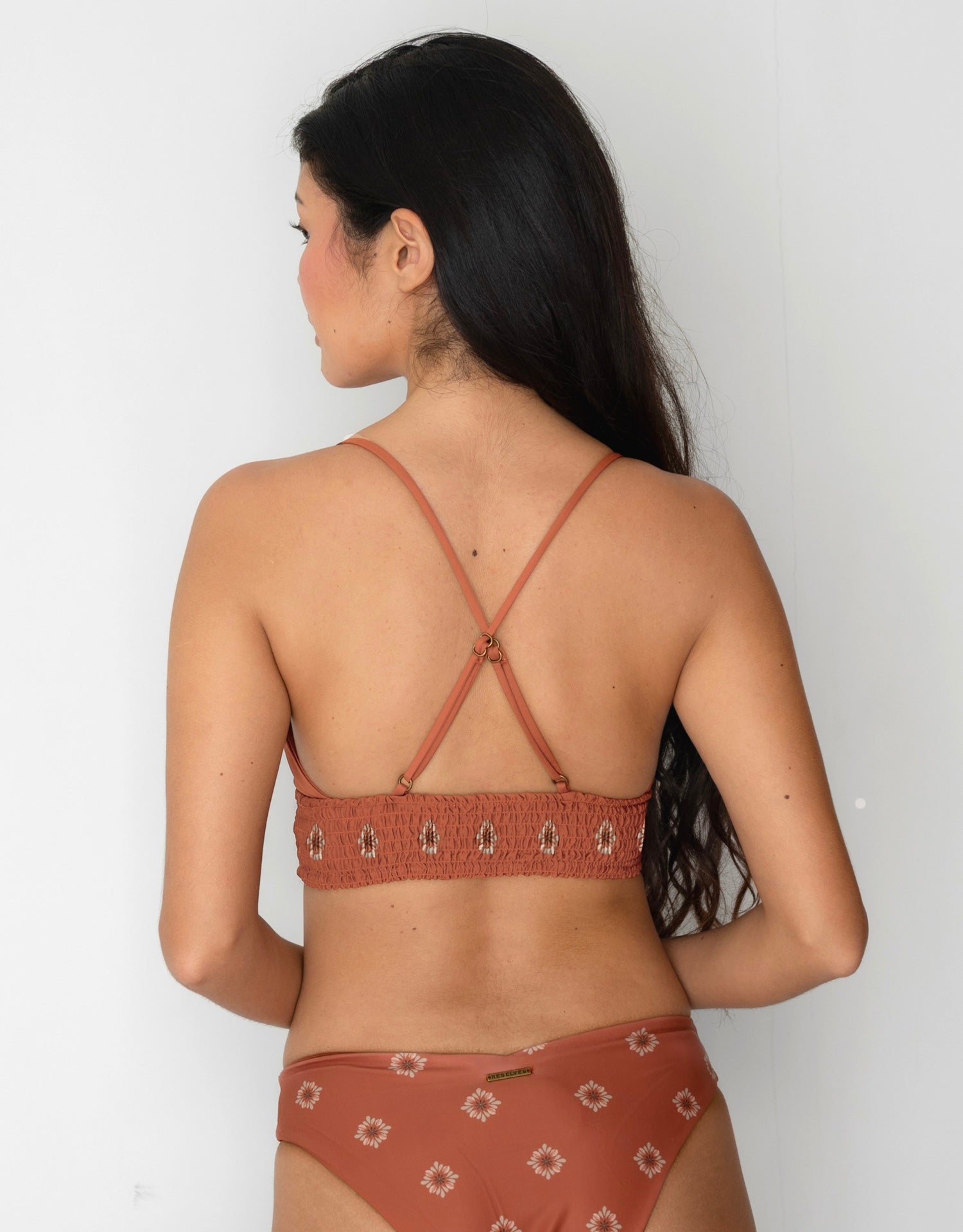 バックのデザインはストラップがクロスになっているので背中をスッキリ魅せてくれます。